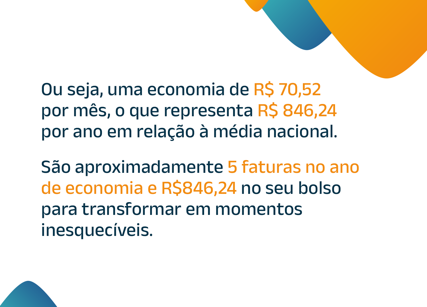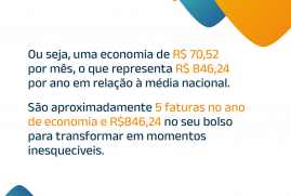 Isso significa uma economia mensal de R$ 70,52 em relação à média nacional — o que representa R$ 846,24 por ano, equivalente a cerca de 5 faturas inteiras de luz economizadas.
