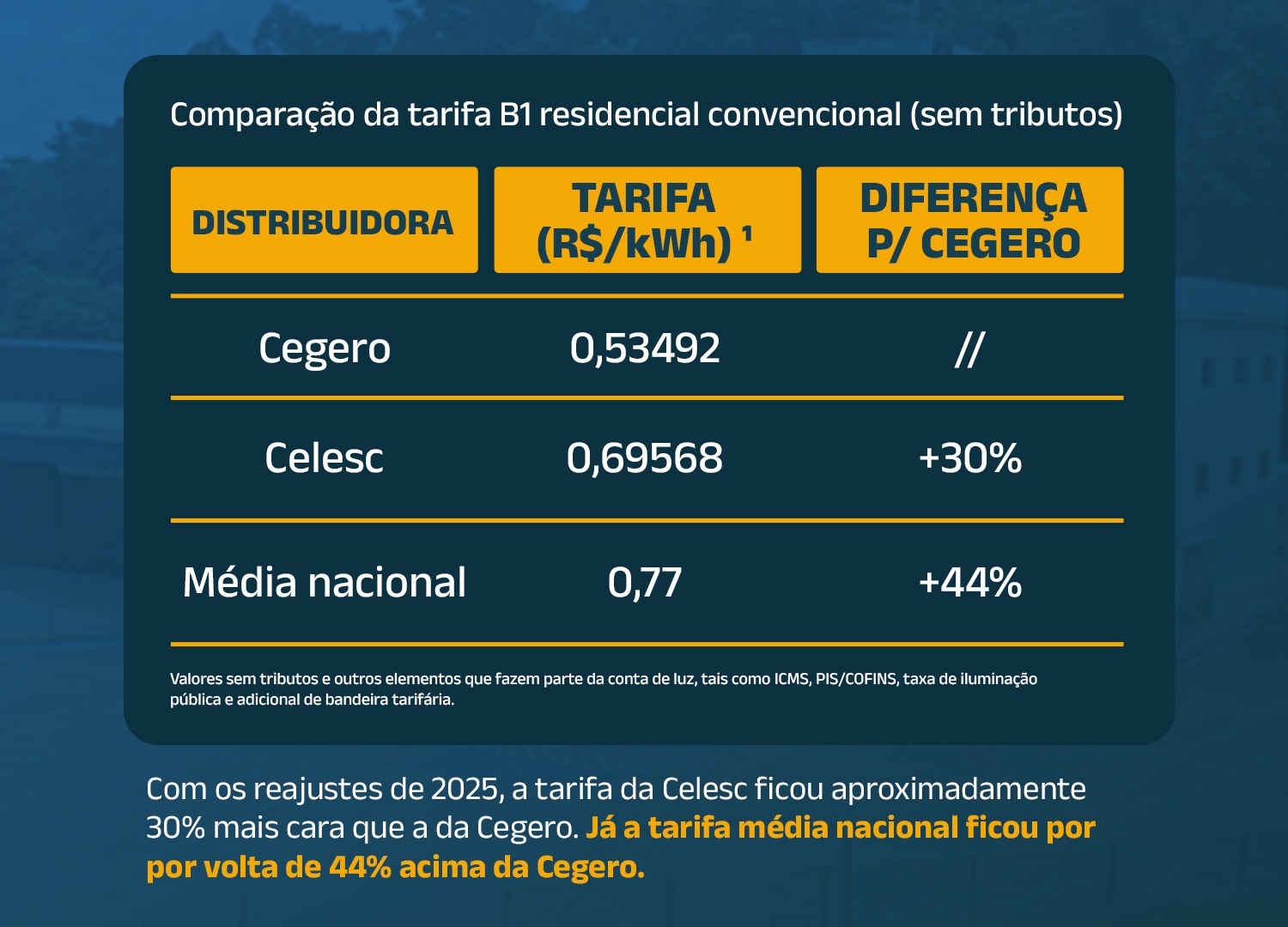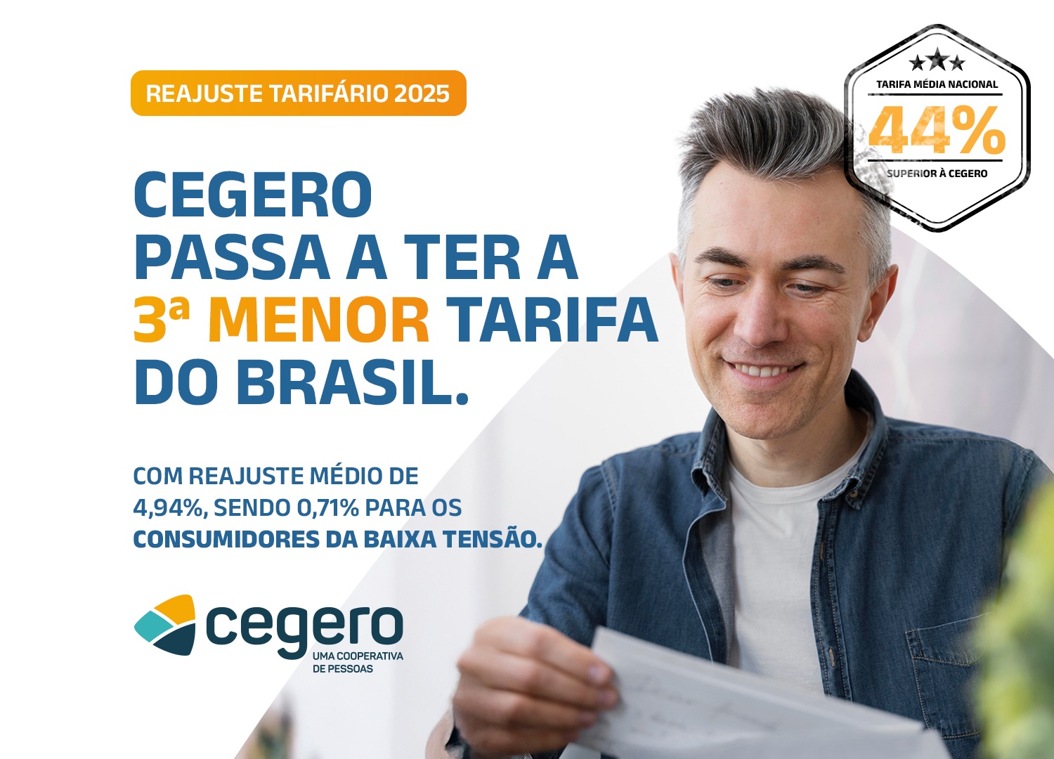Com este reajuste, a Cegero passou da 5ª posição em 2024 para a 3ª tarifa mais barata do Brasil em 2025.
